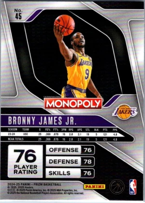 2024-25 Panini Prizm Monopoly #45 Bronny James