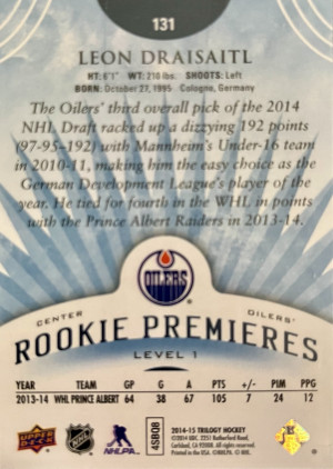 2014–15 Upper Deck Trilogy Leon Draisaitl Rookie /499