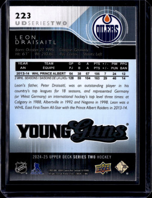 24/25 UD SERIES 1 YOUNG GUNS RENEWED EXCLUSIVE #223 LEON DRAISAITL (052/100)