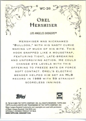 2025 Topps Allen & Ginter #WC-26 Orel Hershiser Wicked Curves