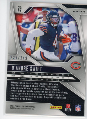 2024 Panini Prizm #47 D'Andre Swift Orange /249