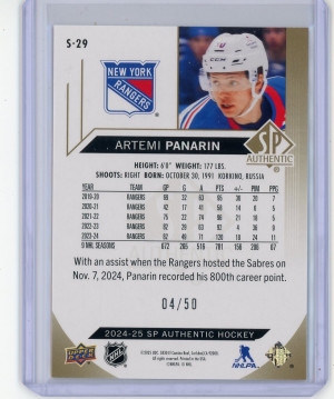 2024-25 SP Authentic Artemi Panarin Spectrum FX Gold 4/50 #S-29
