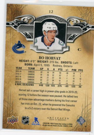 2020-21 Artifacts Blue Sapphire #12 Bo Horvat /499
