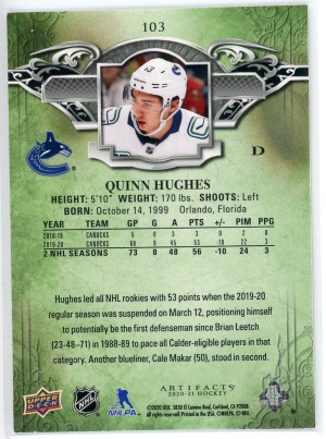 2020-21 Artifacts Quinn Hughes /499