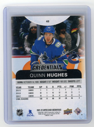 2021-22 Credentials #48 Quinn Hughes Orange 107/149