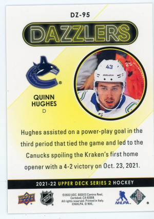 2021-22 Upper Deck Quinn Hughes Dazzlers Purple