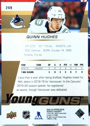 2024-25 UD HIGH GLOSS 10/10 Quinn Hughes Young Guns Renewed
