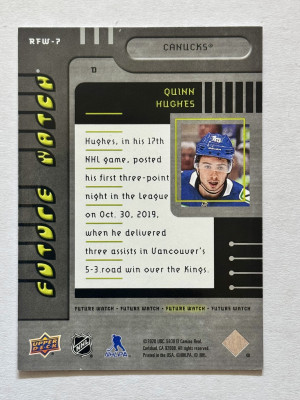 2019 UD SP Authentic Quinn Hughes 99' Retro Future Watch /249