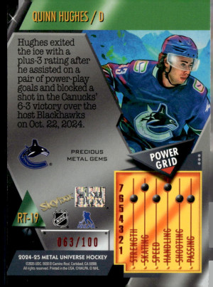 24/25 SKYBOX METAL RETRO RED PRECIOUS METAL GEMS PMG #RT-19 QUINN HUGHES (063/100)