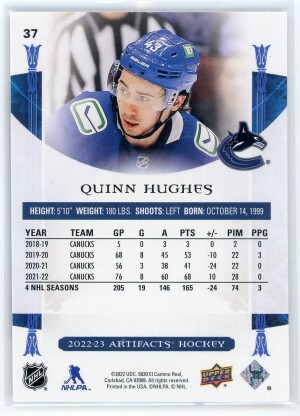 2022-23 Artifacts #37 Quinn Hughes Copper 77/299