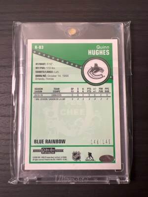 Quinn Hughes OPC Platinum Retro Rainbow Blue Rookie /149