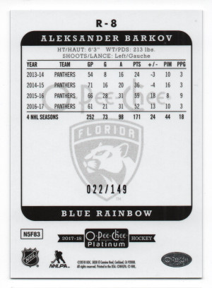 2017-18 O-Pee-Chee Platinum Retro Blue Rainbow Parallel #R-8 Aleksander Barkov /149