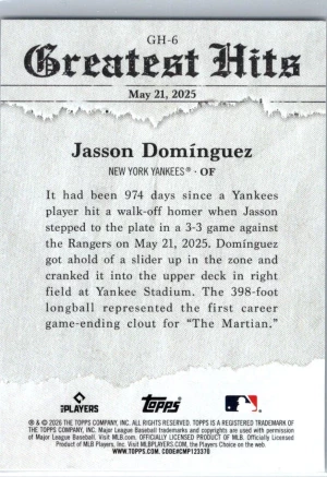 2026 Topps #GH-6 Jasson Domínguez 2025 Greatest Hits