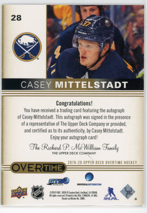 2019-20 Upper Deck Overtime #28 Casey Mittelstadt Autograph Gold