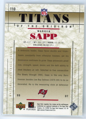2002 SP Legendary Cuts #110 Warren Sapp Titans of the Gridiron /1500
