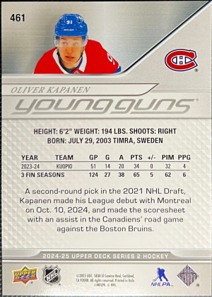 2024-25 Young Guns Outburst- Oliver Kapanen
