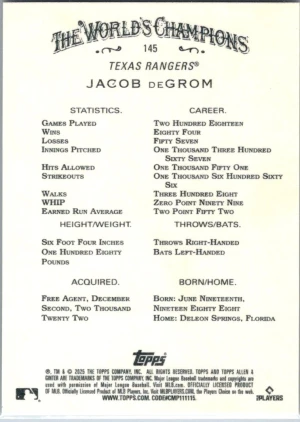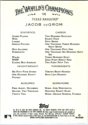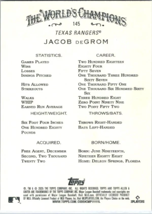 2025 Topps Allen & Ginter #145 Jacob deGrom Mint
