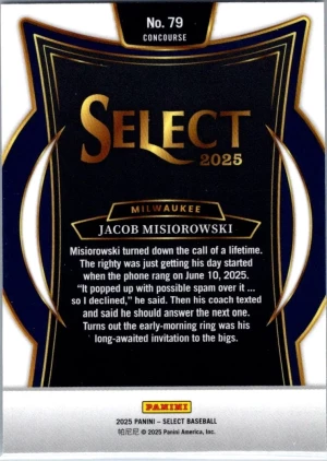 2025 Panini Select #3 Jacob Misiorowski Select Throwback