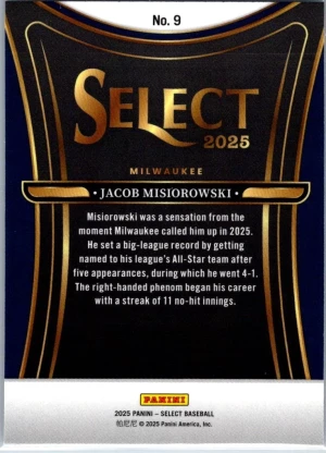 2025 Panini Select #9 Jacob Misiorowski Phenomenon