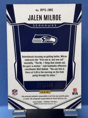 2025 Panini Phoenix #RPS-JME Jalen Milroe Silver Rookie Patch Autograph #/149