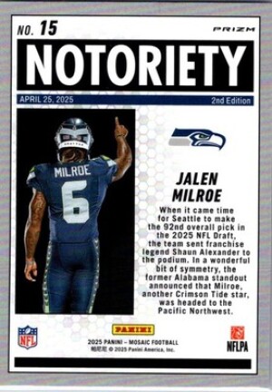 2025 Panini Mosaic #15 Jalen Milroe Notoriety Mosaic Pink Fluorescent