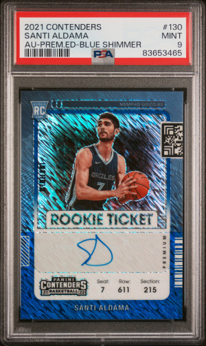 2021 Panini Contenders Santi Aldama Blue Shimmer Auto /20 PSA 9