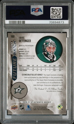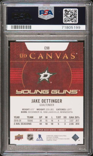 2020 Upper Deck Jake Oettinger Young Guns PSA 10 Gem Mint
