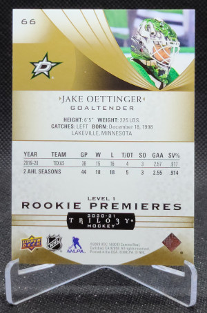 2020-21 Upper Deck Trilogy #66 Jake Oettinger /999 RC