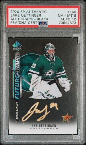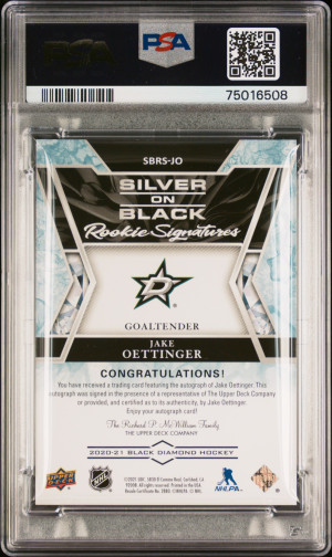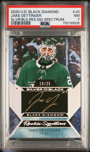 2020 Upper Deck Black Diamond Silver On Black Rookie Signatures Jake Oettinger Slvr/Blk.rke.sig-Spectrum PSA 7 NM