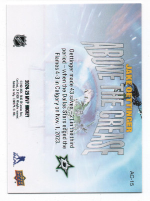 2024-25 Upper Deck MVP Above the Crease #AC-15 Jake Oettinger