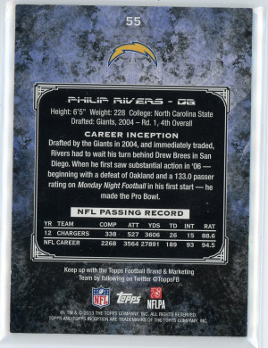 2014 Topps Inception #55 Phillip Rivers 73/75