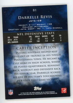 2011 Topps Inception #81 Darrelle Revis Blue 145/209