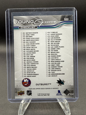 Schaefer Misa Young Guns Checklist Outburst 2025-26