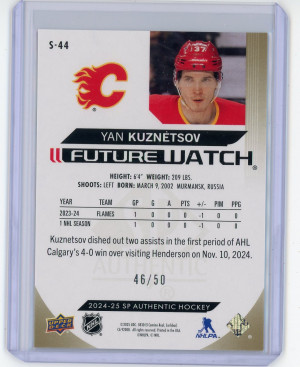 2024-25 SP Authentic Yan Kuznetsov Spectrum FX Gold Future Watch 46/50