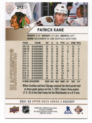 2021-22 Upper Deck ePack Speckled Rainbow Foil Parallel #292 Patrick Kane