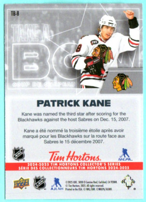 Patrick Kane #TB-8 2024 Upper Deck Tim Horton's Retrospective  Rookies Take A Bow