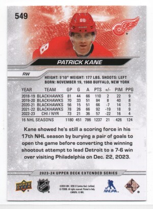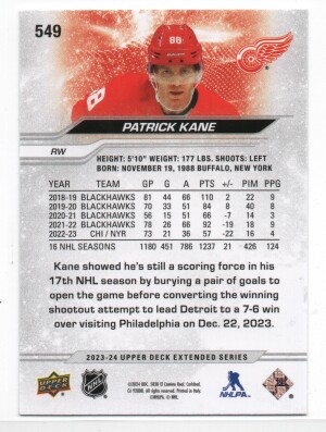 Patrick Kane - 2023-24 Upper Deck Extended Series ePack Silver Foil #549
