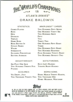 2025 Topps Allen & Ginter #135 Drake Baldwin