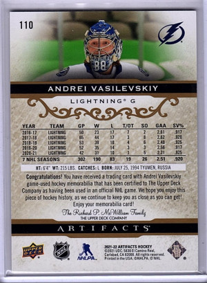 2021-22 Artifacts Andrei Vasilevskiy Dual Jersey /199
