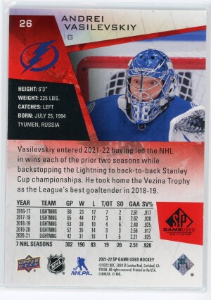 2021-22 SP Game Used #26 Andrei Vasilevskiy Red Fragment 123/205