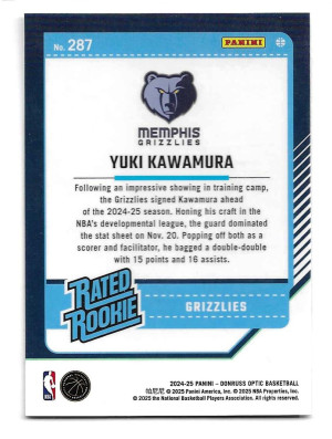 2024-25 Donruss Optic Rated Rookie #287 Yuki Kawamura (RC) - Memphis Grizzlies