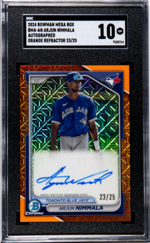 🔥2024 Bowman Mega Box Arjun Nimmala Orange Refractor auto /25 SGC 10