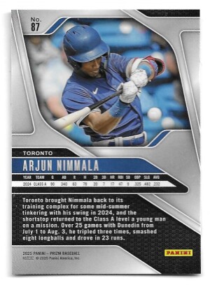 2025 Panini Prizm #87 Arjun Nimmala (RC) - Toronto Blue Jays