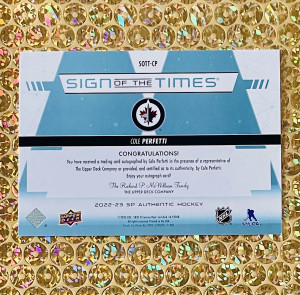Cole Perfetti SP Authentic Rookie Sign Of The Times Auto