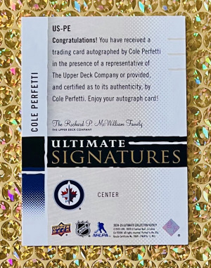 2023-24 UD Ultimate Collection #US-PE Cole Perfetti Ultimate Signatures Auto