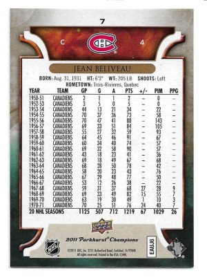 2011-12 Parkhurst Champions #7 Jean Beliveau - Montreal Canadiens