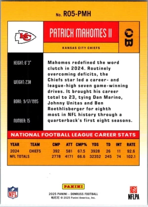 2025 Donruss #R05-PMH Patrick Mahomes II Retro 2005