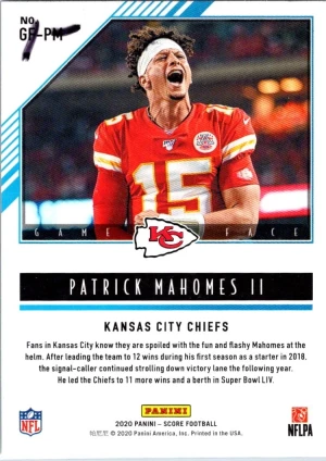 2020 Score #GF-PM Patrick Mahomes II Game Face