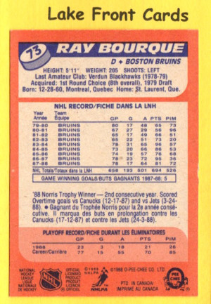 Ray Bourque #73 1988 O-Pee-Chee Boston Bruins