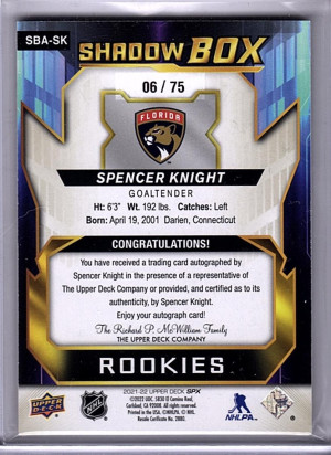 2021-22 SPX ShadowBox Auto /75 Spencer Knight Rookie